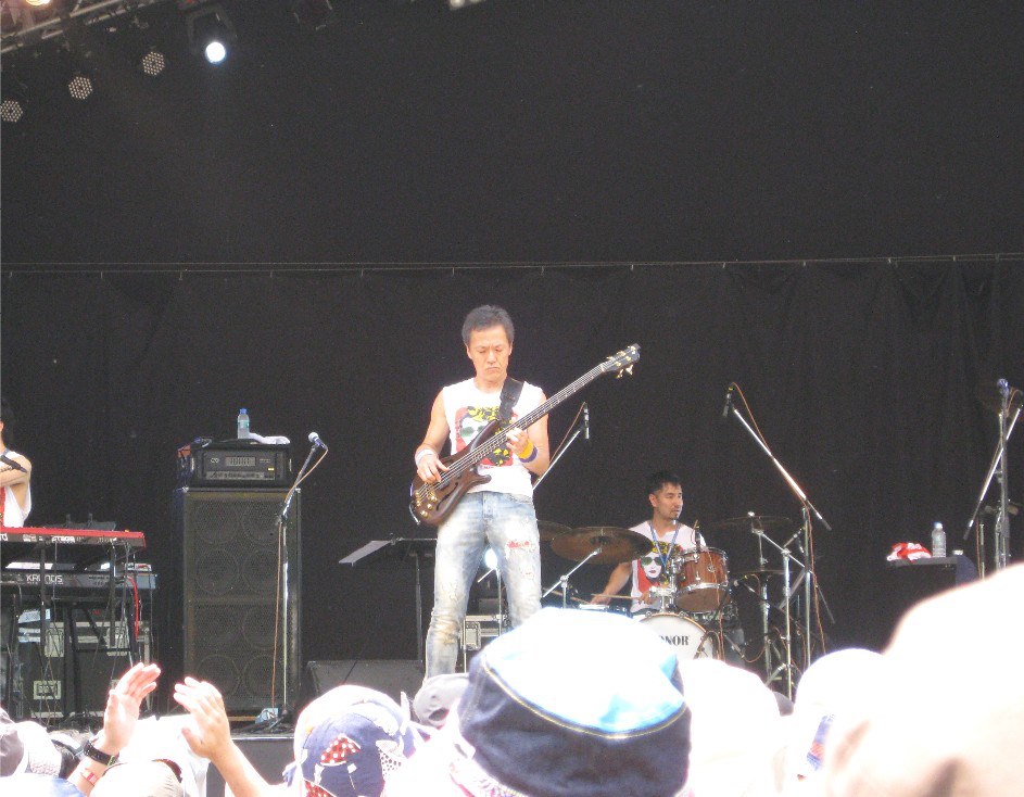 FujiRock”夏木マリ”さんライブは最高に盛り上がって終了!マリさんもメンバーも燃え尽きましたー。会場に来てくれた皆、最高でした!どうもありがとう!そして、東京に戻りました。・・あ、暑い! 昨夜の苗場食堂ライブには、あのBRAHMANのTOSHI-LOWさんが、りょうさんと一緒に観に来てくれて,打ち上げにも参加!ライブを気に入ってくれたようで嬉しかった。彼のメッセージに感動したことがあるので、どこかで協力できたらと思っています。 フェスと言えば、ジャズフェスばっかり出演してきましたが、ロックフェスティバル、何だか、ベースを弾き始めた頃の自分に戻れて嬉しいよ!